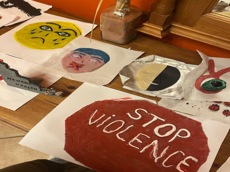 ✅ Painted and sculpted symbolic anti-violence artworks
