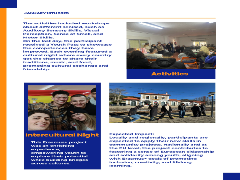 This series of newsletters documents key moments, activities, and outcomes of the Erasmus+ youth exchange project “Hearing, Feeling, Acting: In Search of Neurodevelopmental Change in Youth!”, held in Collado Mediano, Spain, from January 11–18, 2025.